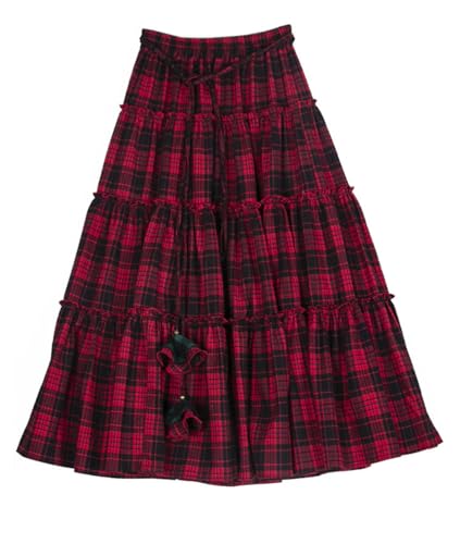 Femiserah Women's Fall Winter Plaid Ruffle Tiered Long Skirt High Elastic Waist Maxi Thicken Tartan Skirt 6