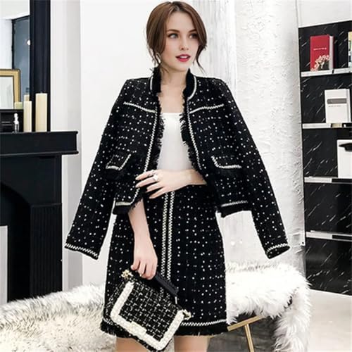 • Material: This women's tweed suit is made of high-quality fabric, tweed trim, solid color, fully lined; the skirt is knee-length, wearing it will make you more sexy and fashionable Made of tweed, high-quality fabric, lightweight, quick-drying, very soft to the touch and wear, very skin-friendly