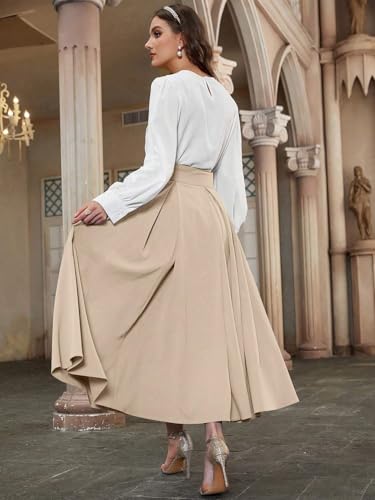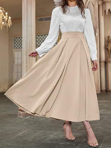 • Formal??&?Evening / Flared / No / Plain / Casual / Unlined / No / Pleated, Zipper / Apricot / High Waist / Long / Loose / Non-Stretch / Fabric / 95% Polyester, 5% Elastane / Machine wash, do not dry clean / No