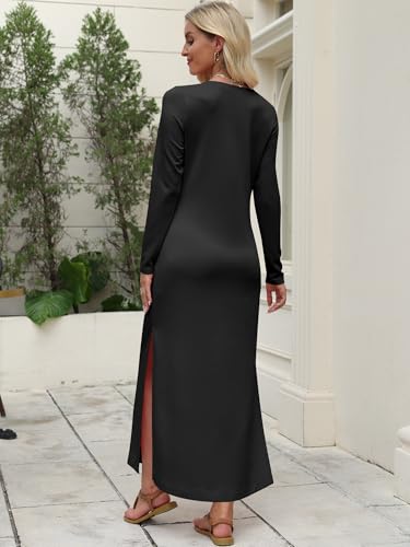 ANRABESS Women Long Sleeve Dresses 2025 Fall Casual Crewneck Loose Fit Split Flowy Wrinkle-Free Travel Vacation Maxi Dress 2