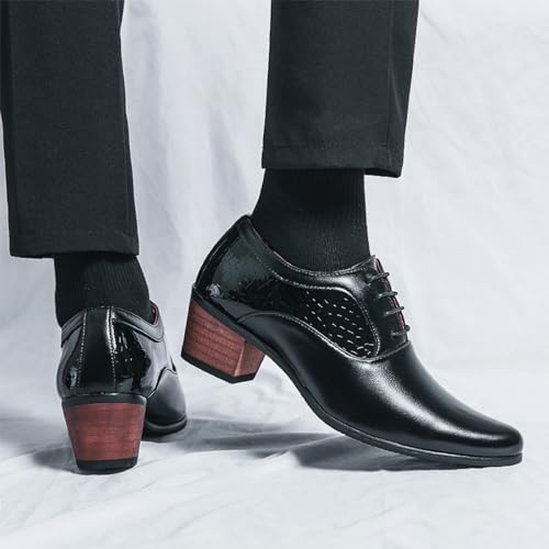 Oxfords Shoes for Men Pointed Toe Shoes Lace-up Low Top Block High Heel Leather Dress Shoes for Wedding Work 5