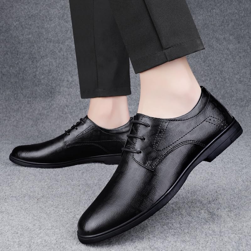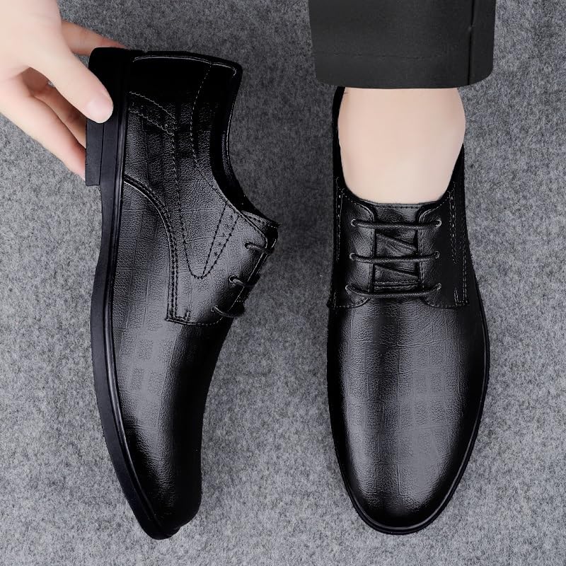 HOT ! HOOENG Dress Oxford for Men Lace Up Round Toe Solid Color Vegan Leather Derby Shoes Resistant Non Slip Rubber Sole Anti-Slip Block Heel Classic(Color:Black,Size:8.5)