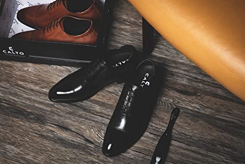 HOT ! CALTO Men's Invisible Height Increasing Elevator Shoes - Brown Premium Leather Lace-up Formal Derby Oxfords - 3 Inches Taller - Y6711 - Size 10 D(M) US