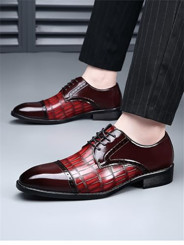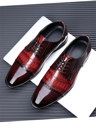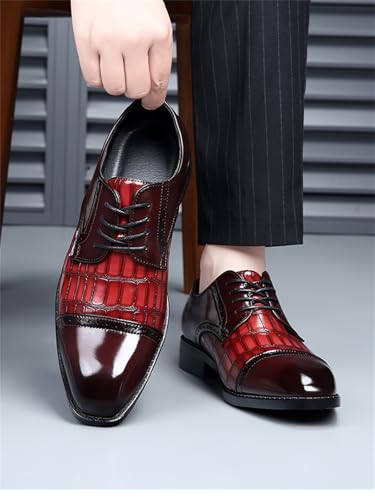 Mens Vintage Crocodile Print Business Casual Oxfords Derby Formal Square Cap Toe Dress Shoes for Men 6