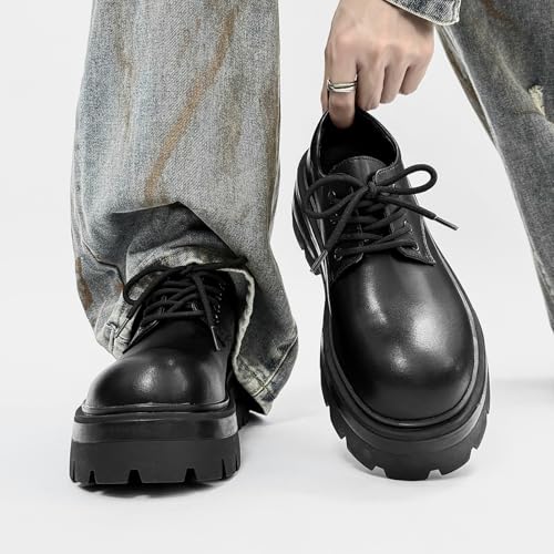 Men's Leather Platform Big Toe Oxfords Lace Up Non-Slip Height-Enhancing Lug Soles Classic Retro Round-Toed Wide-Toed Business Derby Shoes for Work Formal Casual Dress Shoes 6