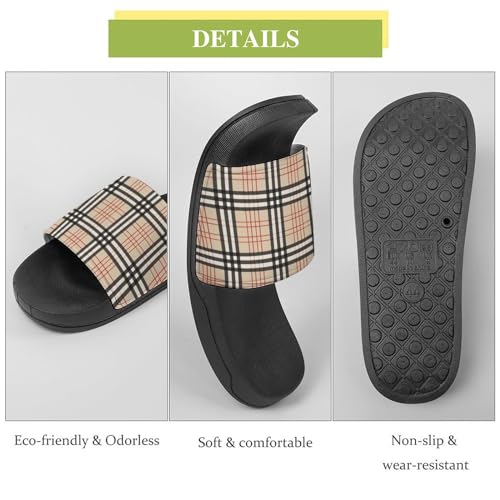 More information about Beige Plaid Tartan Checkered Womens Slide Sandals Non Slip Summer House Slippers for Girls Slip-on Flip Flops