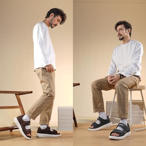 • [Dual straps adjustment]:Dual open toe straps for easy, customized fit, accommodating high insteps and swelling, no bending required. These wide width sandals for men are adjustable so makes it easier to slide in and out.bringing you an unprecedented convenient experience and enjoy easy travel!