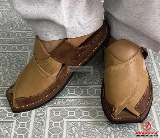 Handcrafted Two-Tone Peshawari Chappal, Classic Beige and Brown Leather Peshawari Chappal For Men, Traditional Leather Sandals 7