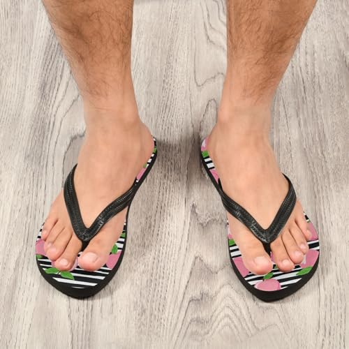 Black Striped Peach Fruit Flip Flops for Beach Thong Sandals Anti-slip Lightweight Beach Shoes for Summer Travel Swim 7