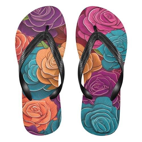 Color Rose Flower Beach Summer Casual Flip Flop Sandals Non-Slip Quick Dry for Women Men 214B2918 1