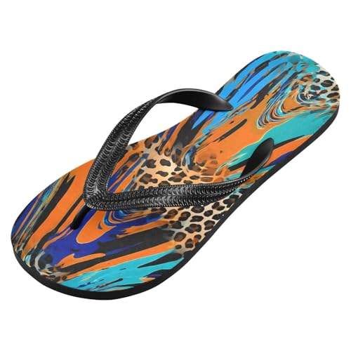 Leopard Waves Colors Orange Flip Flop Beach Summer Casual Sandal for Women & Men Shower Shoes 20861888 5