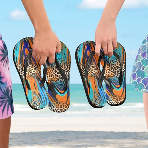 Leopard Waves Colors Orange Flip Flop Beach Summer Casual Sandal for Women & Men Shower Shoes 20861888 4