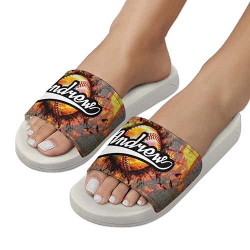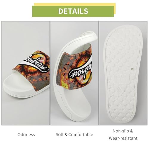 Custom Sports Slides Personalized Slippers - Baseball Sandals Quick Drying Softball Slippers Indoor Outdoor,Gifts for Men Youth Boy (White,Style 49) 5