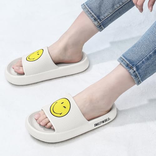 HOT ! SmileyWorld Cloud Slides for Women and Men Smile Face Pillow Slippers with Arch Support Non Slip Quick Drying Shower Shoes EVA Flat Sandals
