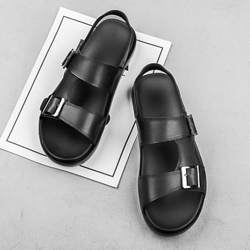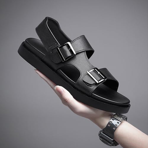 Men's Leather Two-Wear Dual Buckle Closure Flat Sandals Comfortable Breatheable Adjustable Dual Use Ankle Straps Non-Slip Slip On Soft Sole Summer Casual Sandals for Beach Outdoor 6