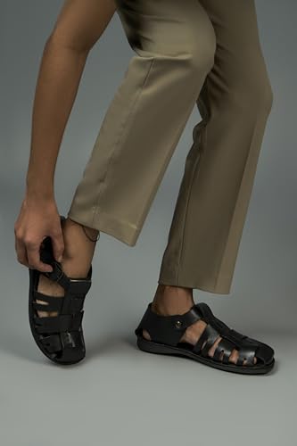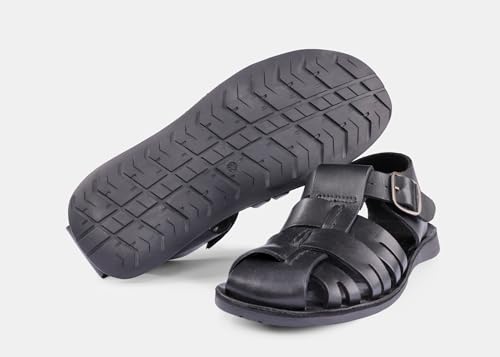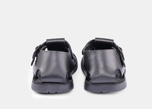 Men's Leather Fisherman Sandals with Buckle Closure, Black 7