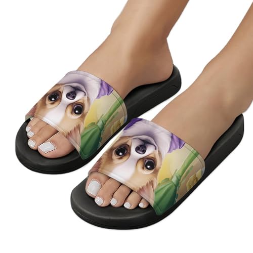 HOT ! Chihuahua King of Mardi and Gras Non Slip Slides Sandals for Women Men Quick Drying Shower Shoes for Bathroom Pool Beach