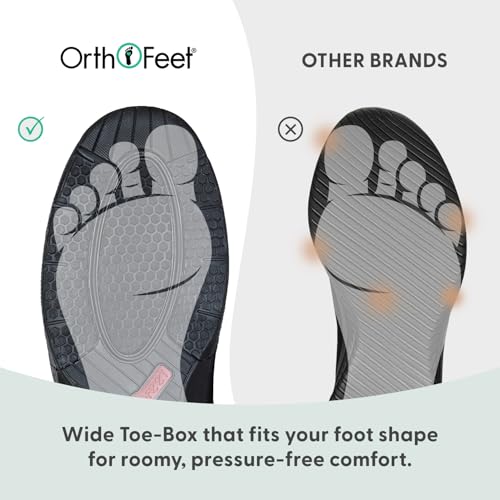 • Fit & Sizing: True to size. Orthofeet shoes are designed with a wide toe-box and stretchable knitted upper that forms to the contours of your feet, providing a customized fit.