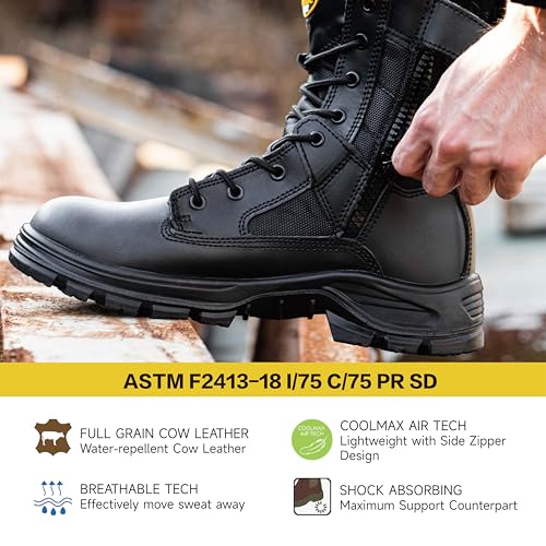 Men's Military Tactical Boots 8" Steel Toe Work Safety Boots with Side Zipper Lightweight Army Combat Boots 5