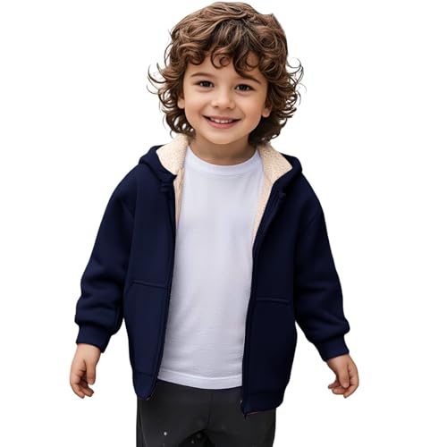 Kids Fleece Jacket Unisex Sherpa Lined Zip Up Hoodie Boys Girls Winter Warm Hooded Sweatshirt with Pockets 6