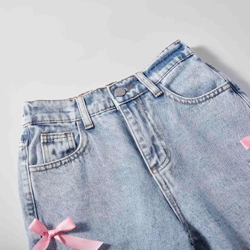 • Adorable Bow Accents & Trendy Design:These cute baggy jeans feature charming pink bows along the seams, adding a playful Y2K-inspired touch. A stylish choice for girls jeans size 10-12 who love streetwear fashion