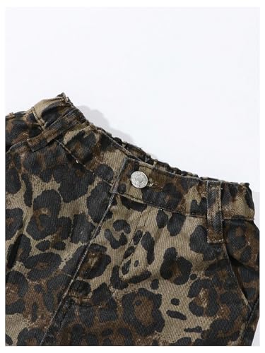 WDIRARA Toddler Girl's Leopard Print Cargo Jeans Flap Pocket Straight Leg Denim Pants 5