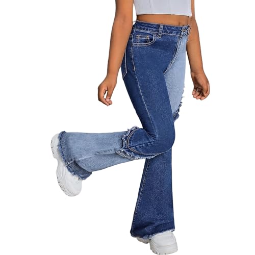 Girls Ripped Flare Jeans Skinny Patchwork Kids High Waisted Denim Pants Bootcut Slim Zipper Vintage Bell Bottom 6