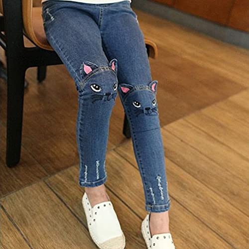 Kids Girl Jeans Fashion Printed Jeans Trousers Denim Pants Skinny Slim Fit Jeans Cute Cat/Rabbit Stretch Jeans 6