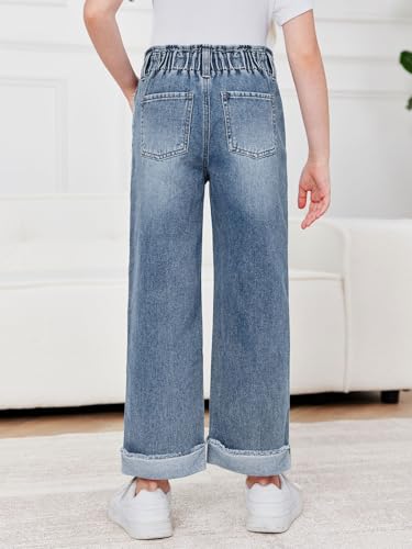 Haloumoning Girls Jeans Kids Elastic Waist Straight Leg Pull on Denim Pants with Pockets 4-14 Years 4