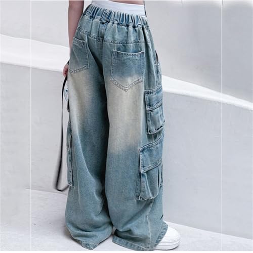 More information about Girl's High Waisted Cargo Jeans Straight Wide Leg Stretch Baggy Jean Y2K Casual Loose Denim Pants Trousers 3-14 Years