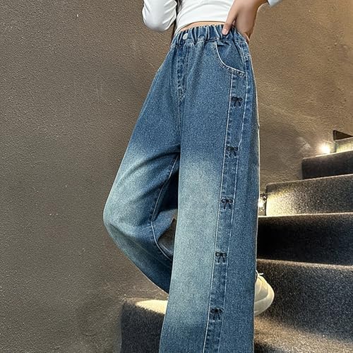 Kids Girls Wide Leg Straight Jeans Washed Elastic High Waist Denim Pants Baggy Casual Trousers for Youth Girls 5