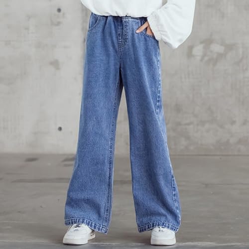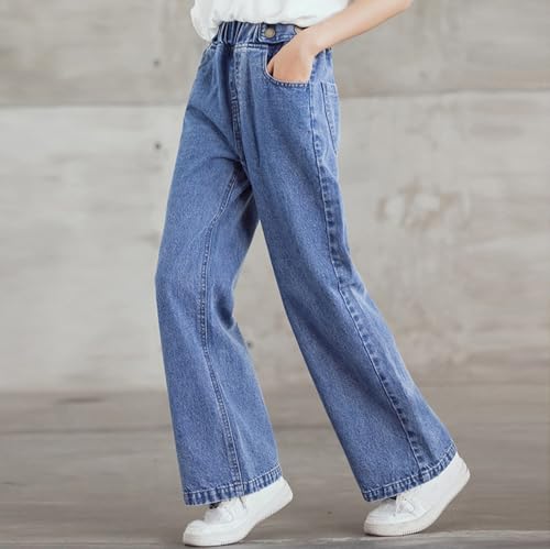 Girl’s Elastic Waist Jeans Wide Leg Demin Pants Loose Casual Trendy Streetwear Long Pant with Pockets for Teen Girl 7