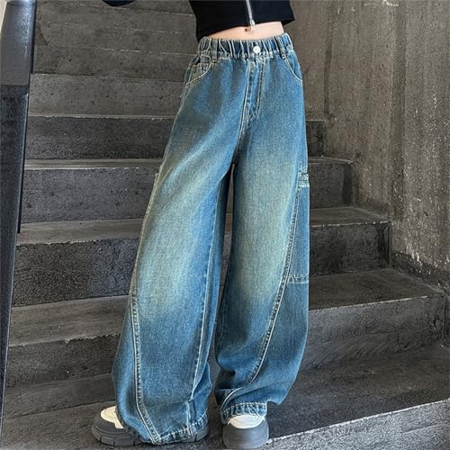 • Design: This baggy wide leg casual denim pant is high-waisted straight leg silhouette. This 𝐯intage jean functional pockets and an elastic waistband for a blend of style and comfort.