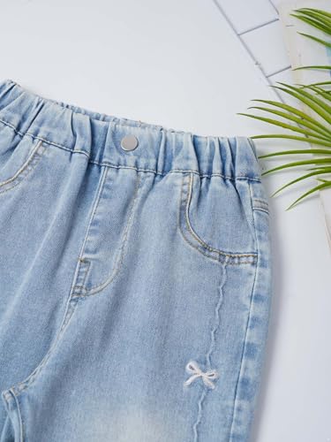 Kids Girls Flare Jeans Bowknot Embroidery Print Denim Pants with Pockets Casual Denim Trousers Streetwear 6