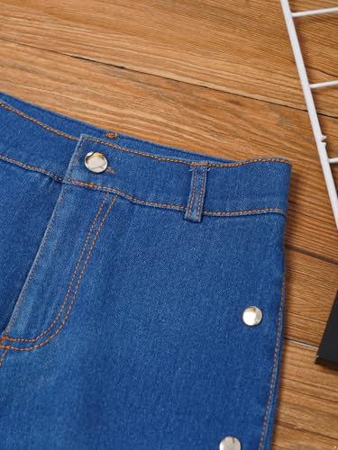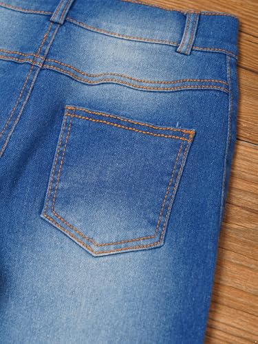 renvena Girls Fashion Long Denim Pants Wide Leg Jeans with Back Pockets for Schooling Party Casual Daily Wear Dark Navy 8 Years 5