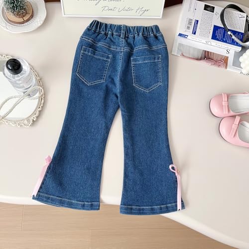 Toddler Kids Girls Flared Denim Pants Baggy Elastic Waist Bell Bottom Jeans Trendy Plain Cute Flare Leg Preppy Jeans 4