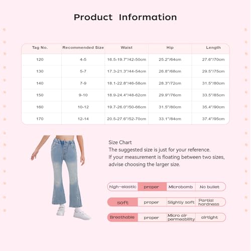 More information about Girls Flare Denim Jeans Elastic Waistband Bell-Bottom Pants with Pockets Girls Vintage for Party