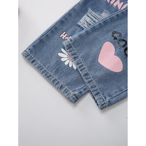 Baggy Jeans for Girls Graphic Prints Ripped Wide Leg Pants Heart Butterfly Elastic Waist Cute Jeans for Girls Y2K Streetwear 4