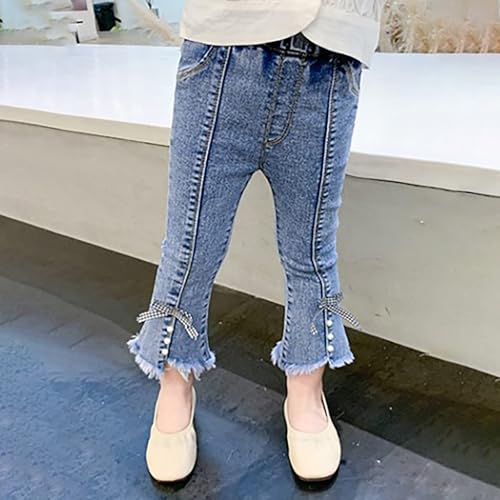 Infant Girls Soft Elastic Waist Bell Bottoms Pearl Bowknot Denim Pants Kids Comfy Cotton Split Hem Flare Pants 4