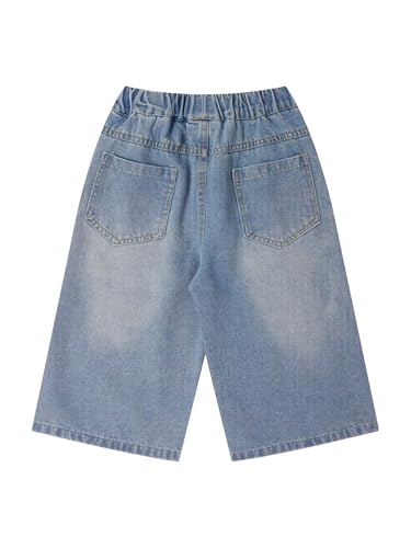Linjinx Kids Girls Denim Cropped Pants Wide Leg Baggy Jeans Casual Vintage Elastic Waist Cropped Trousers with Pockets 7