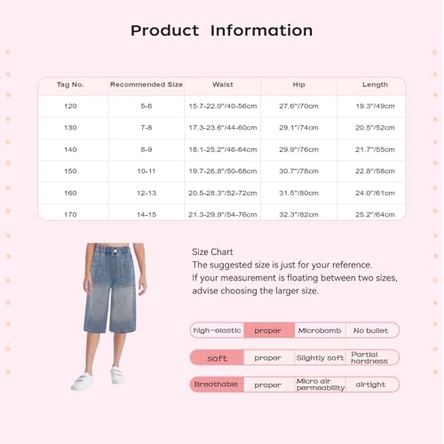 Linjinx Kids Girls Denim Cropped Pants Wide Leg Baggy Jeans Casual Vintage Elastic Waist Cropped Trousers with Pockets 6