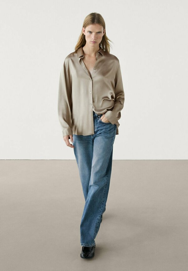 HOT ! PLAIN WITH LONG SLEEVES - Button-down blouse - beige