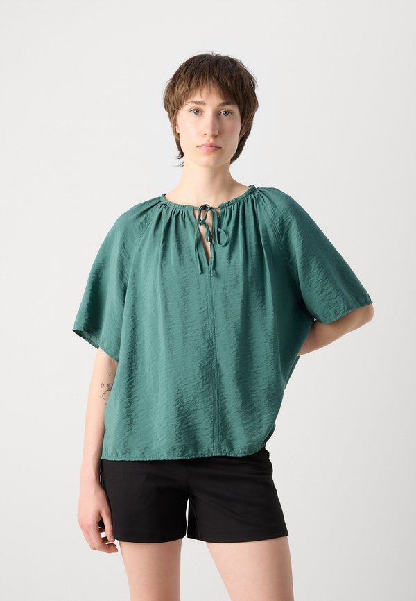 BLOUSE ROUND NECK WITH DRAWSTRING AND GATHERING SOLID - Blouse - summer pine 1