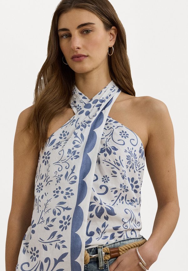 FLORAL LINEN SLEEVELESS HALTER BLOUSE - Top 2