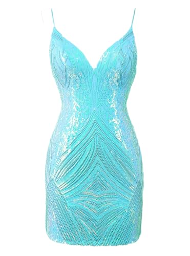 POMUYOO Sparkly Sequin Lace Homecoming Dresses for Teens Spaghetti Straps Short Tight Formal Prom Cocktail Gowns 6