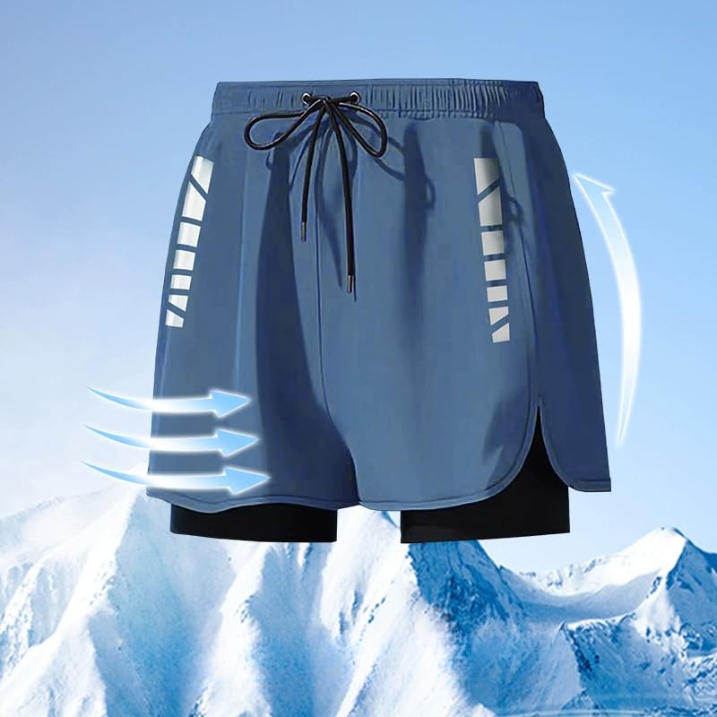 HOT ! Casual Men's Double Layer Quick-Dry Stretch Sports Shorts for Summer Workouts Swimming