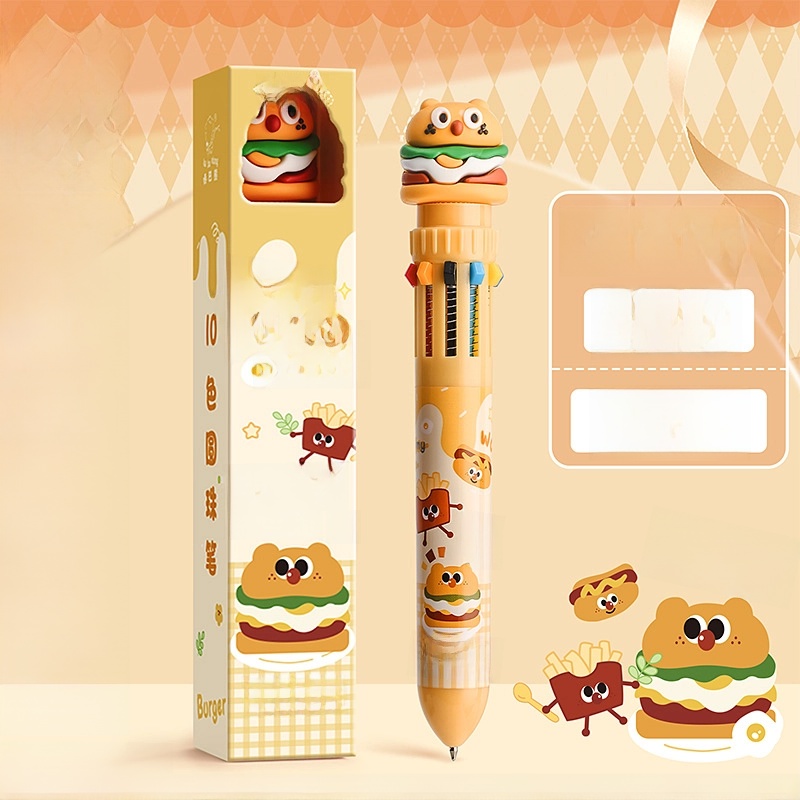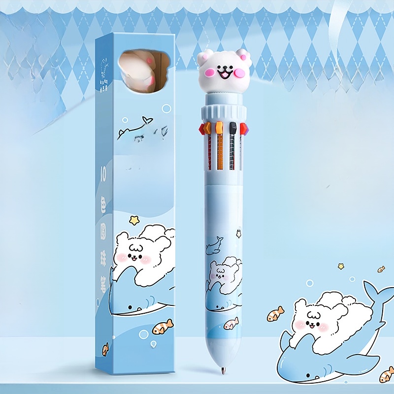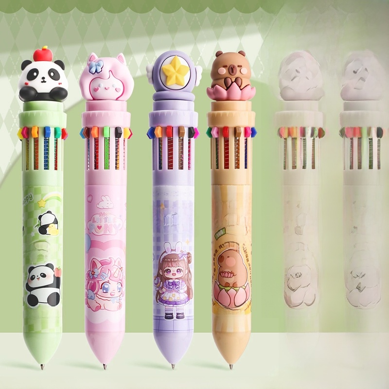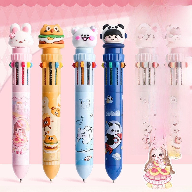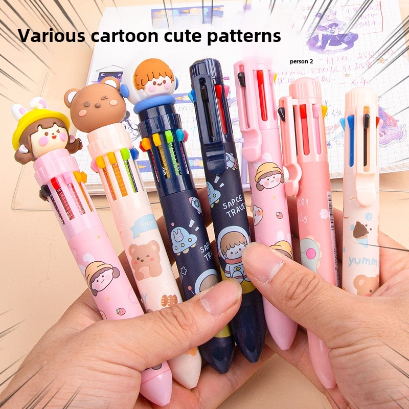 Primary School Students Creative Press Multi-color Ballpoint Pen Children's Cartoon Cute Multi-functional 10 Color Hand Account Color Multi-color Pen 10