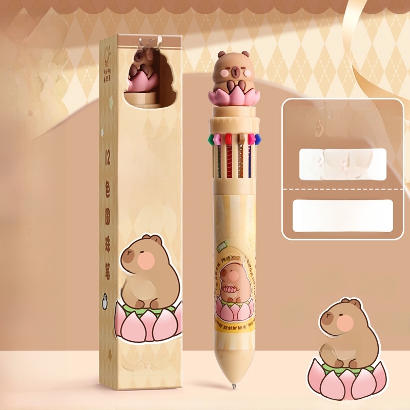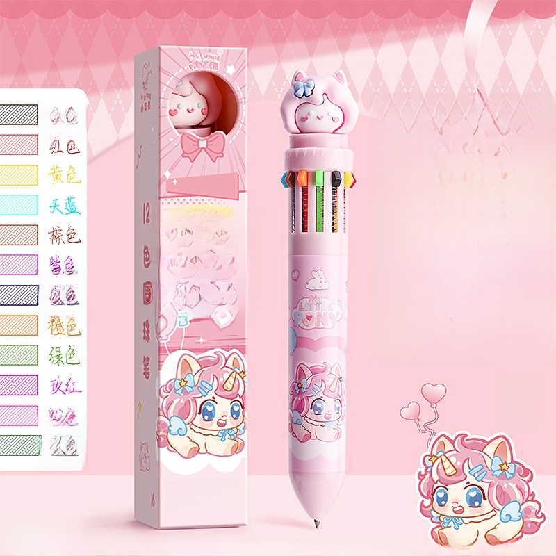 Primary School Students Creative Press Multi-color Ballpoint Pen Children's Cartoon Cute Multi-functional 10 Color Hand Account Color Multi-color Pen 12