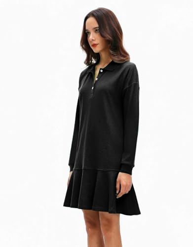 • FEATURES: This polo dress blends athleisure with elegance, featuring a classic polo neck, long sleeve, three-button placket, and ruffle hem.