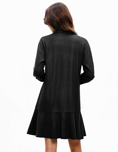 Women's Polo Dress Long Sleeve Collared V-Neck Ruffle Hem Fall Shirt Mini Dresses 6